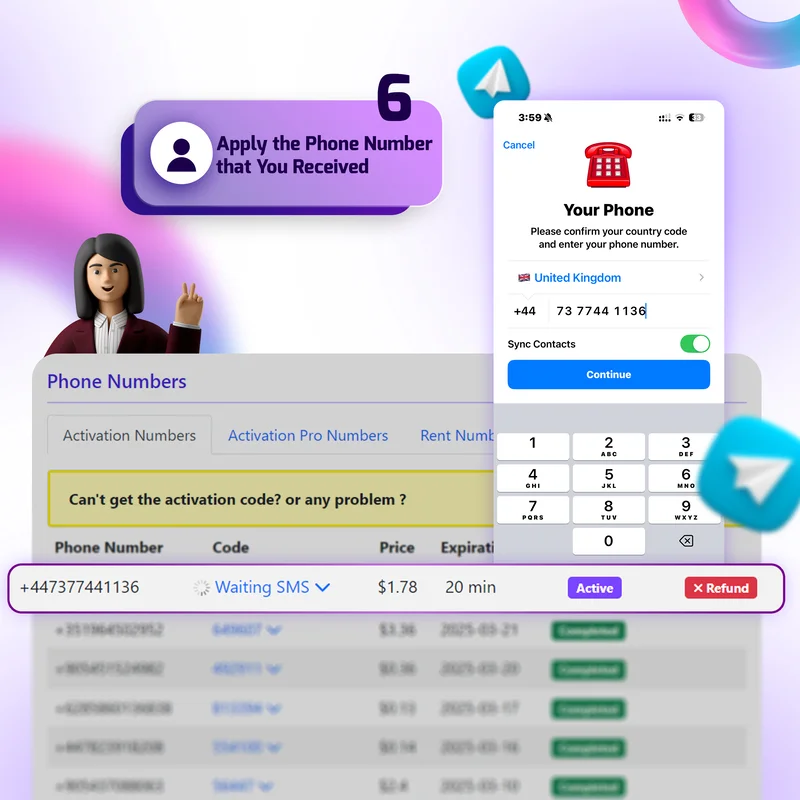 If you need a virtual number to create your Telegram account, our service will meet your needs. You can create your own virtual number using BuyNumber and get the Telegram activation code and create your Telegram account in less than a few minutes. We offer Telegram virtual numbers from more than 150 different countries to give our customers a lot of choice. We also accept crypto payments